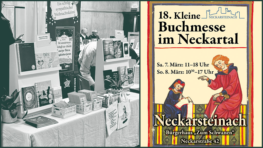 Wir freuen uns, als Gastverlag auf der 18. Kleinen Buchmesse im Neckartal in Neckarsteinach dabei zu sein – einer gemütlichen, überregional bekannten Buchmesse nahe Heidelberg, auf der unabhängige Verlage und Autor*innen ihre Bücher präsentieren.