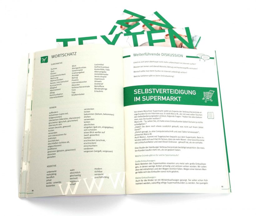 Abwechslunngsreiche Texteinheiten mit Arbeitsaufträgen und Lösungsvorschlägen zur Prüfungsvorbereitung in Kurs und Schule oder zum Selbststudium.
